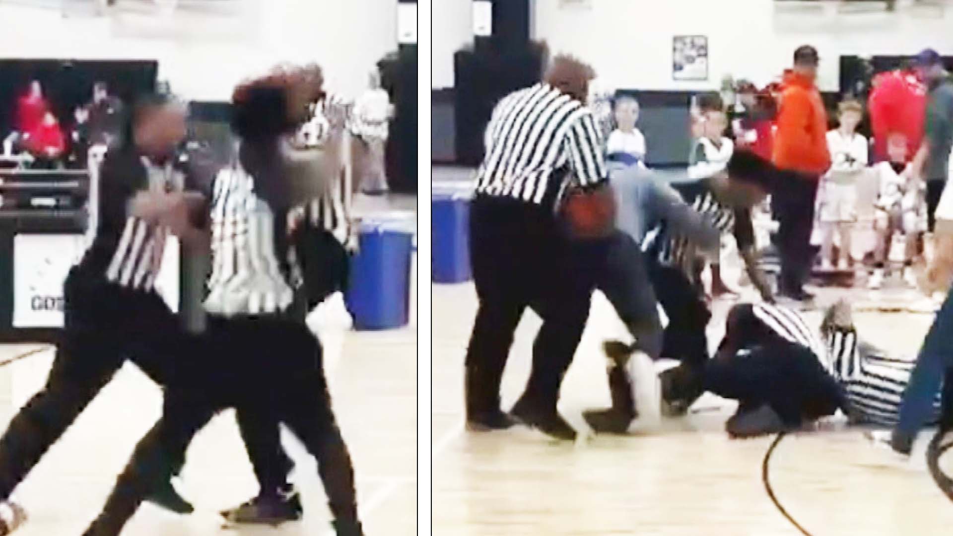 Video of the incident shows one referee lunging at his fellow officiant with his fist raised in the air.