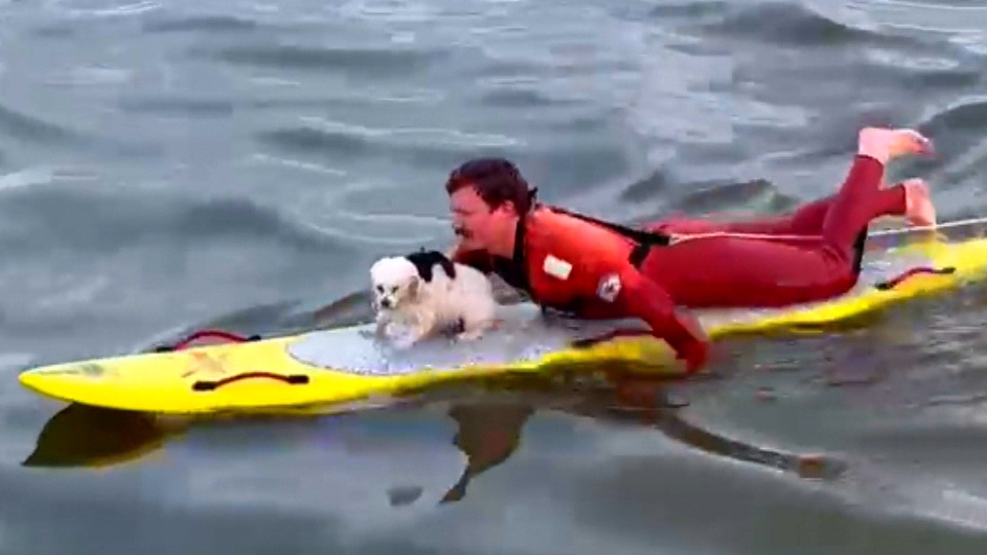 Tofu, an adorable little pup, ran into the water out of fear. Luckily a Long Beach lifeguard, Chase McCall, came to the rescue.