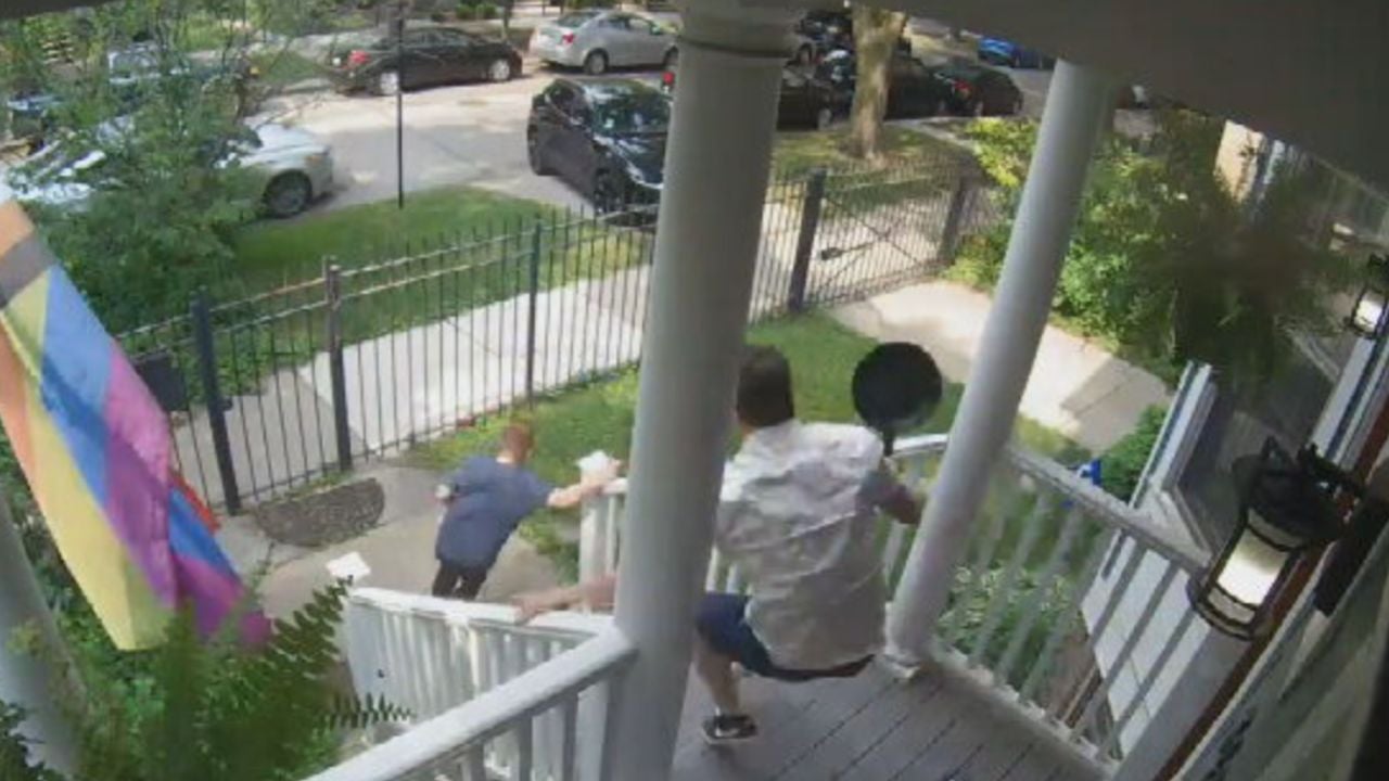 A suspected burglar was chased out of a Chicago house with a frying pan.