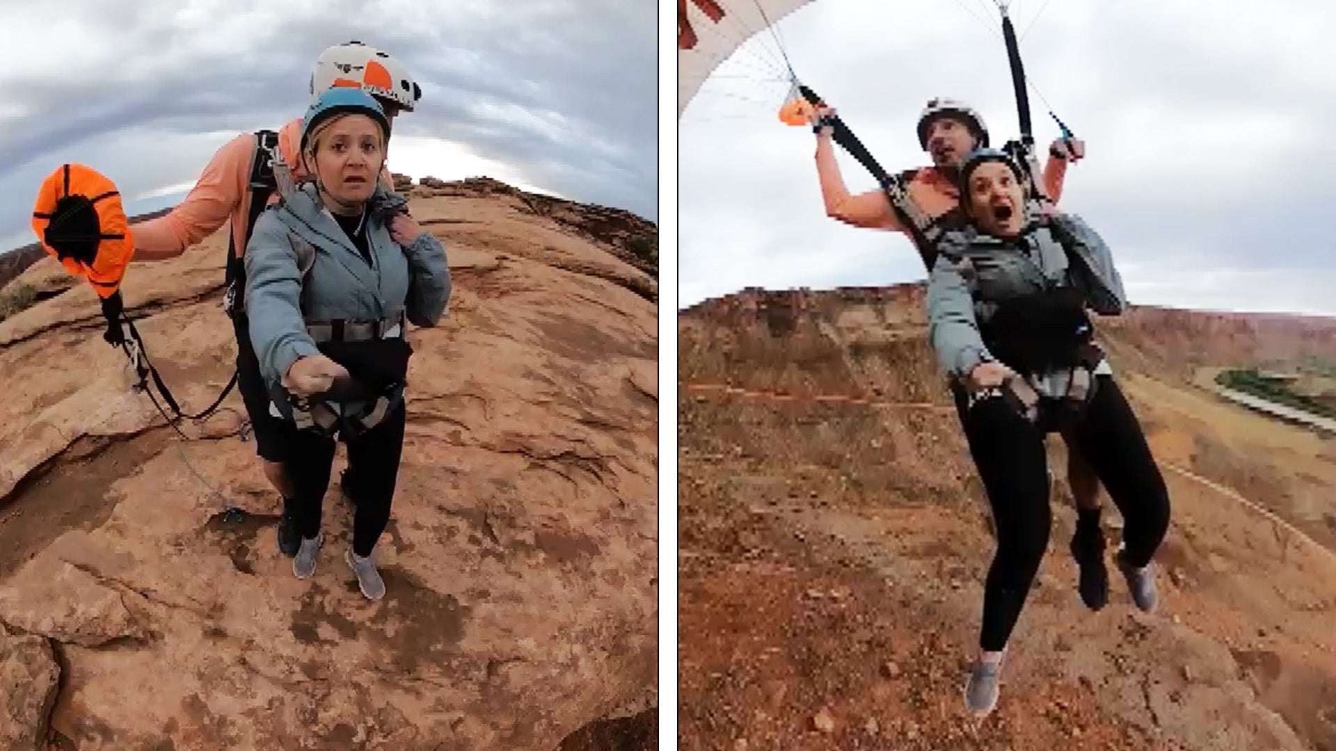 Heather and Ryan Crochet honored their 11th anniversary with a 1,200-foot cliff tandem jump in Moab, Utah.