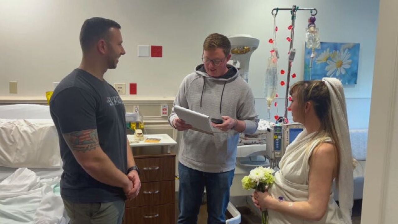One bride and groom rushed their “I-do's” in the delivery room because the bride was in labor.