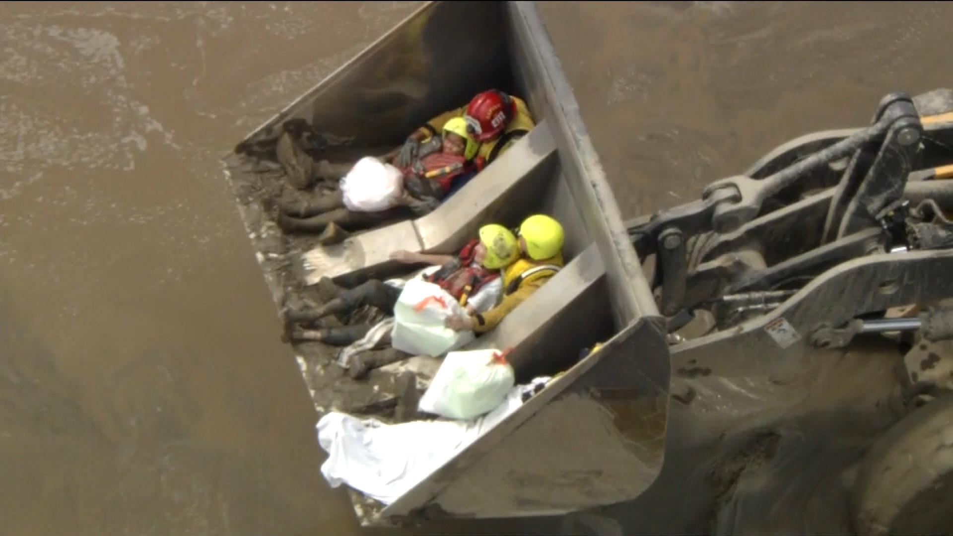 Seniors from the facility were placed into the bucket of the front-loader and then were held by firefighters as they were removed and brought to safety.