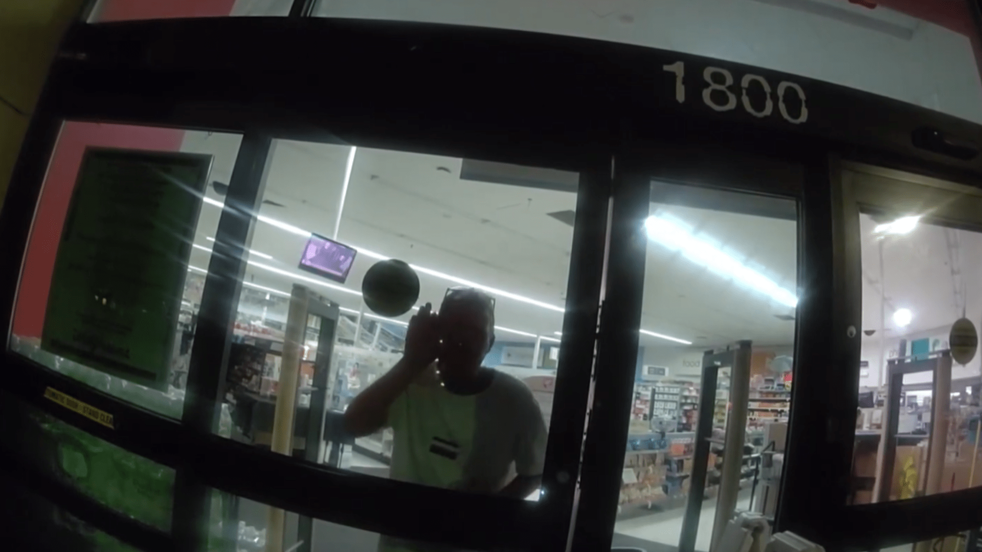 The alarm continued to go off the entire time but Morgan did not leave, and in bodycam footage can be seen meeting police at the front door when they arrive on the scene with a two-liter bottle of Dr. Pepper and a pack of Newports in his hand.