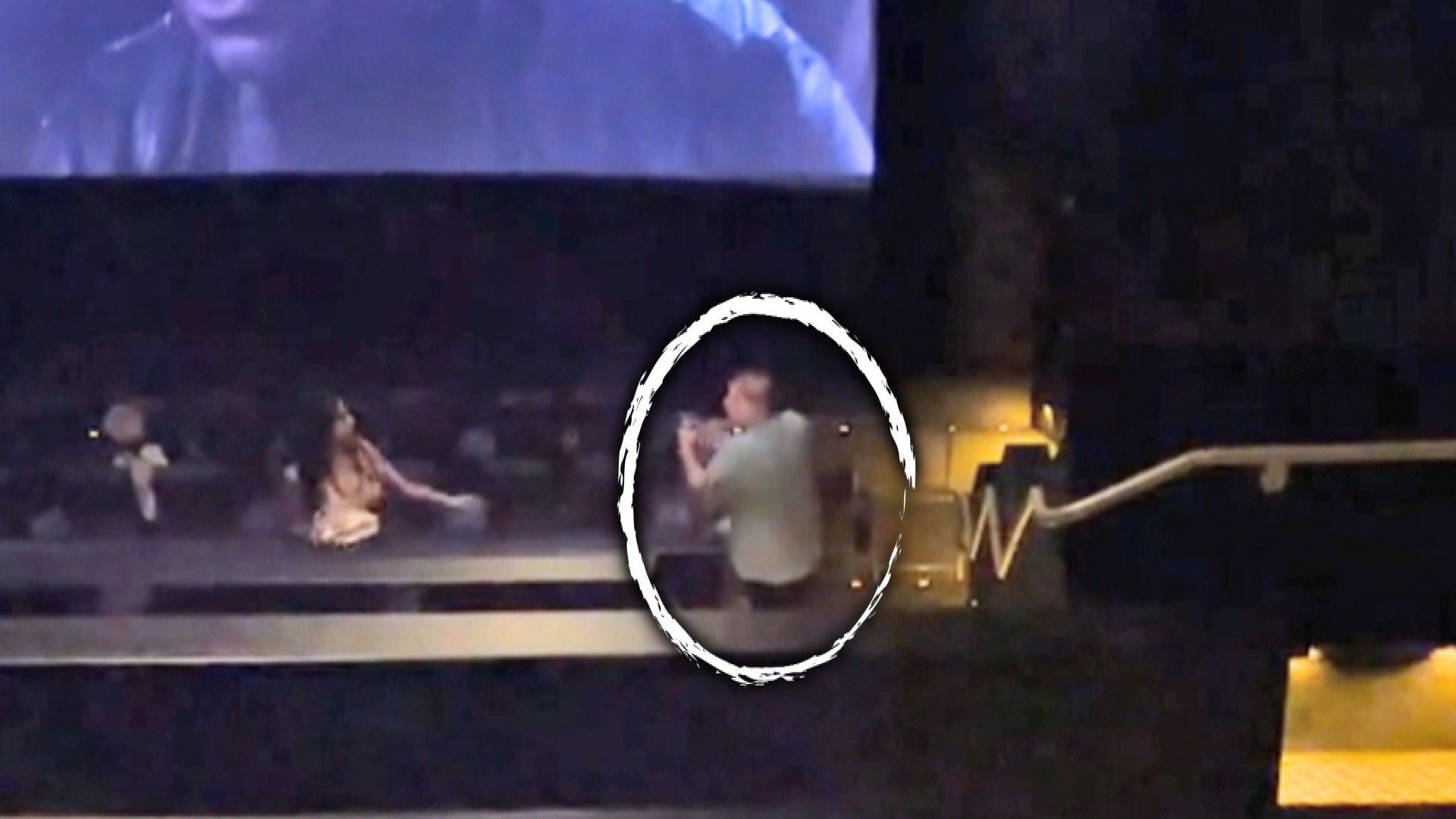 Now, police are still searching for the suspect, who was caught on surveillance camera hurriedly leaving the theater, with his female companion.