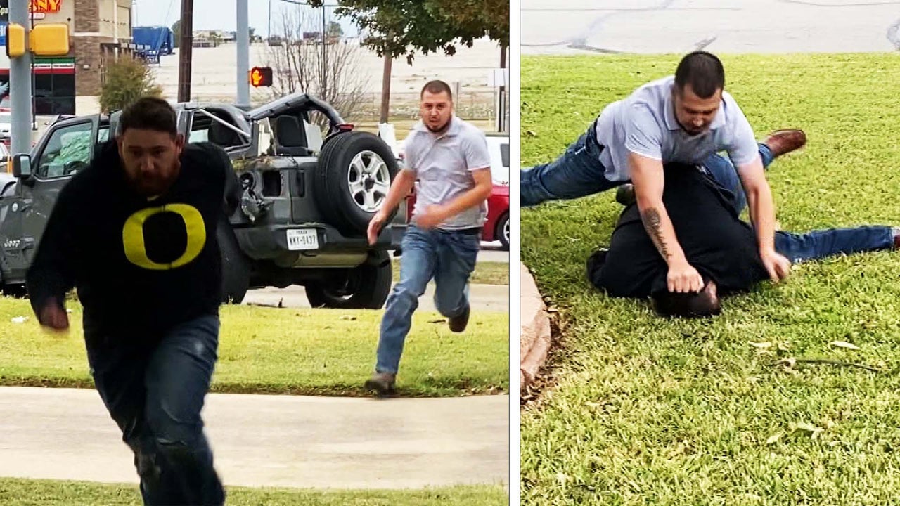 A fast-moving good Samaritan chased after the man and pinned him to the ground.