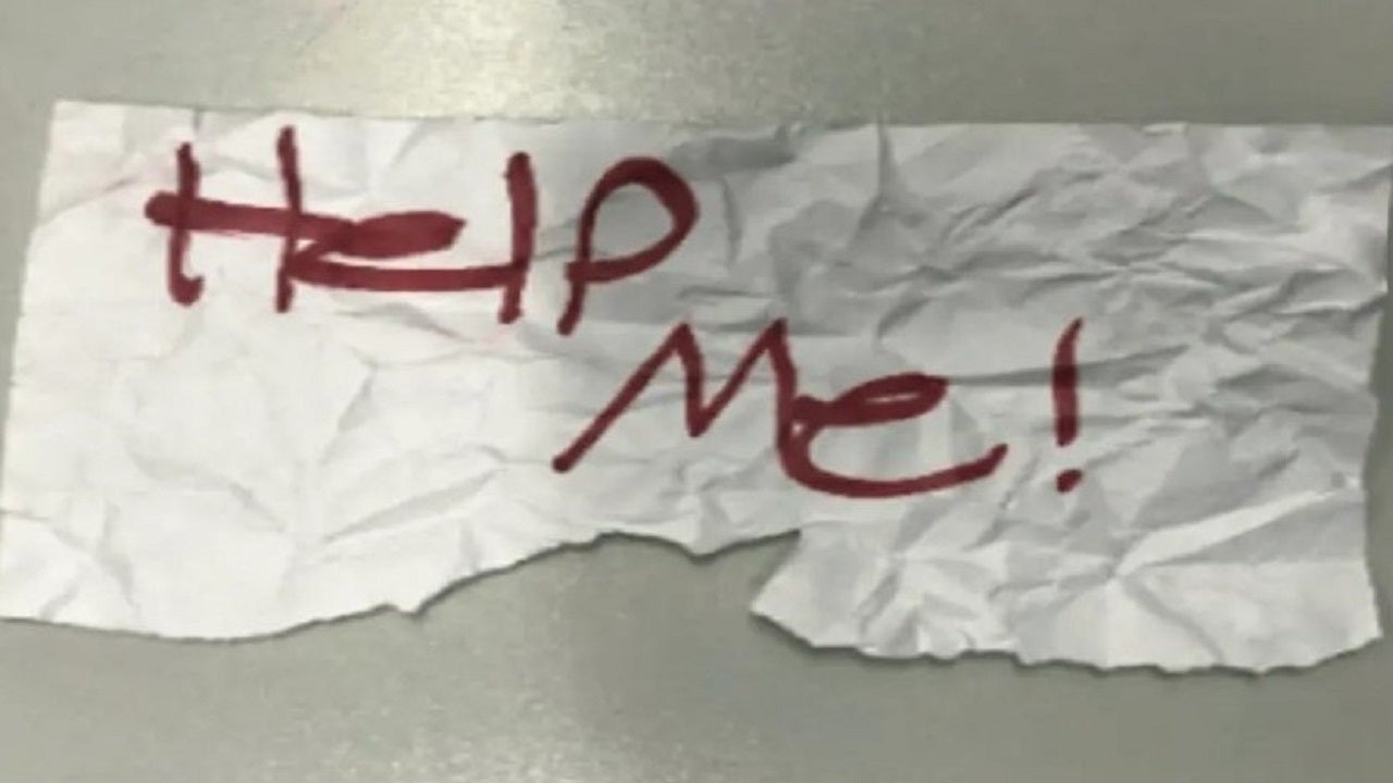 While the man was inside the laundromat, the girl managed to scrawl "Help Me!" on a scrap of paper and held it up the car window, authorities said.
