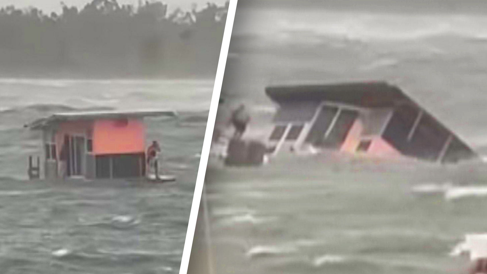 Before the two could launch their rescue mission, however, they watched as a man jumped off his boat, swam to the houseboat, broke the windows and saved the three people trapped inside: newlyweds Chris and Sarah Bourque, and a friend of the couple.