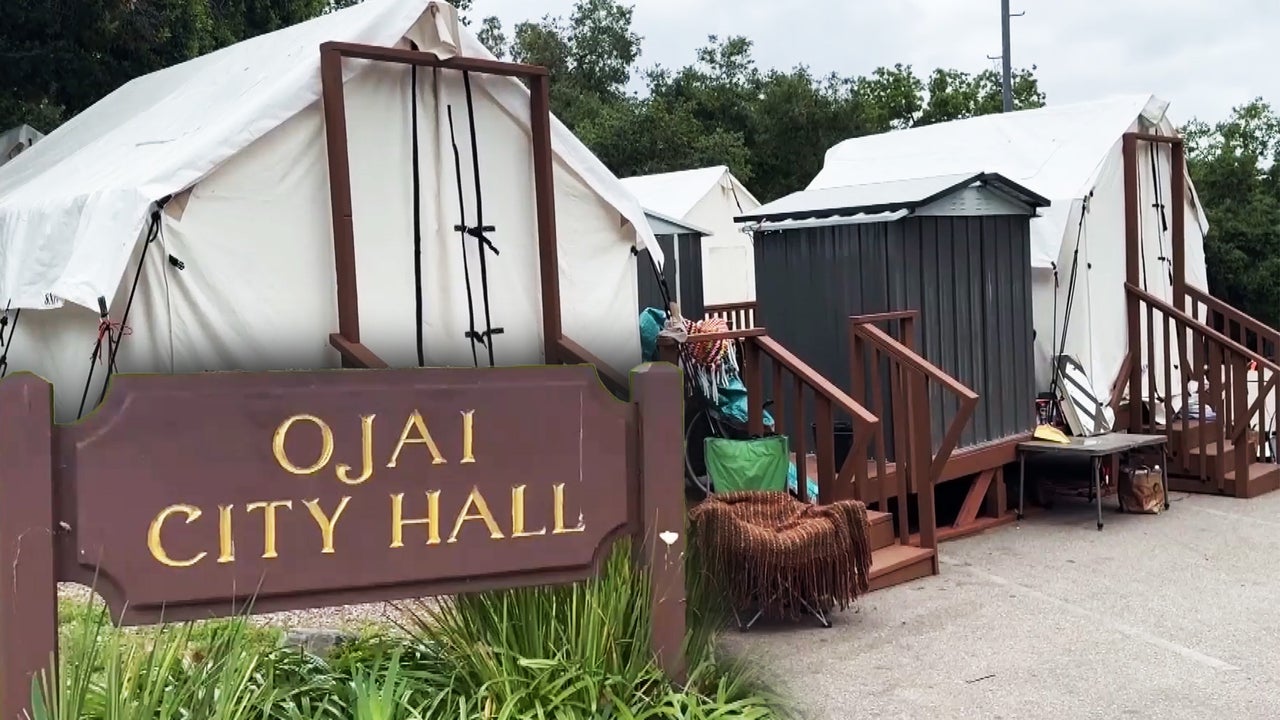 In Ojai, California, canvas tents built on wooden platforms are a step up from the previous site where unhoused people set up their tents.