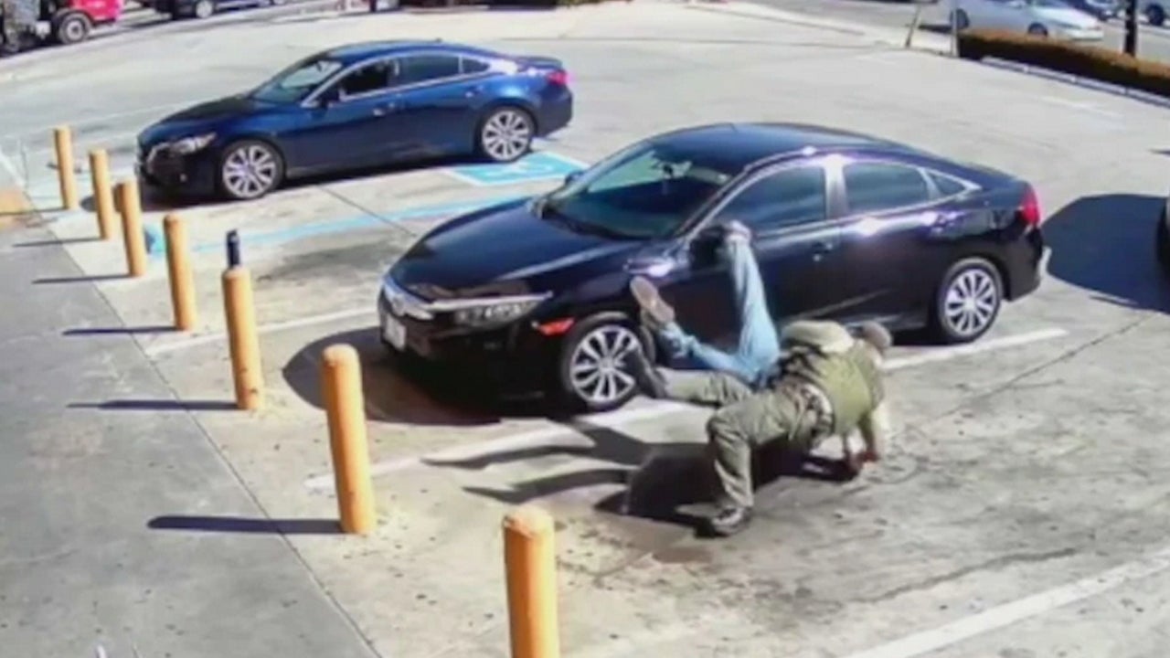 As Brock screams for help, Banza can be seen punching him in the head, according to Brock's attorney. The incident reportedly lasted three minutes.