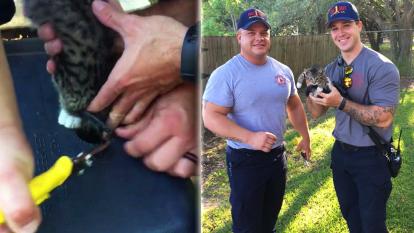 Firefighter Adopts Kitten He Rescued That Got Its Head Stuck in Basketball Hoop Animals 7 years 6 months ago