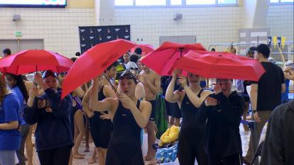 Supporters Carry Red Umbrellas to Show Solidarity With 14-Year-Old Swimmer Battling Bone Cancer Inspirational 7 years 9 months ago