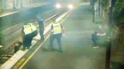 Shirtless Woman in the Path of Oncoming Train Rescued by Police in Pulse-Pounding Video News 8 years ago