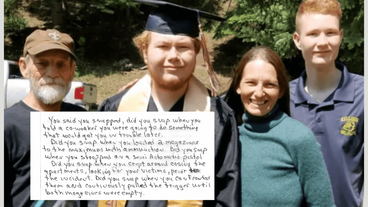 The first statement submitted came from the brother of Kenneth, Joe Guardipee, who addressed Kaylor directly as he wrote: "You said you snapped. Did you snap when you told a coworker you were going to do something that would get you in trouble later. Did you snap when you loaded two magazines to the maximum with ammunition. Did you snap when you strapped on a semi-automatic pistol. Did you snap when you crept around casing the apartments, looking for your victims prior to the incident. Did you snap when you confronted them and continuously pulled the trigger until both magazines were empty."