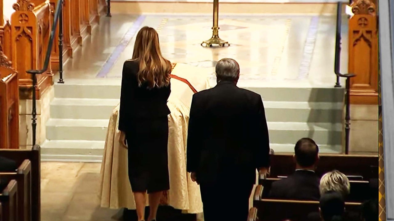 In a tender moment after the service, former president Donald Trump could be seen holding Melania's hand and comforting his wife in her time of grief.