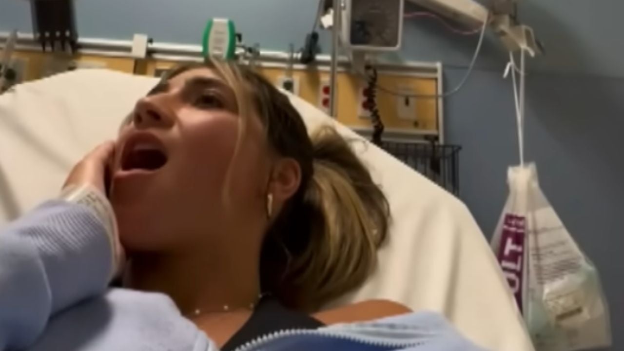 It took four medical personnel to put Jenna Sinatra's jaw back in place. Her head was also wrapped so her jaw would stay shut.