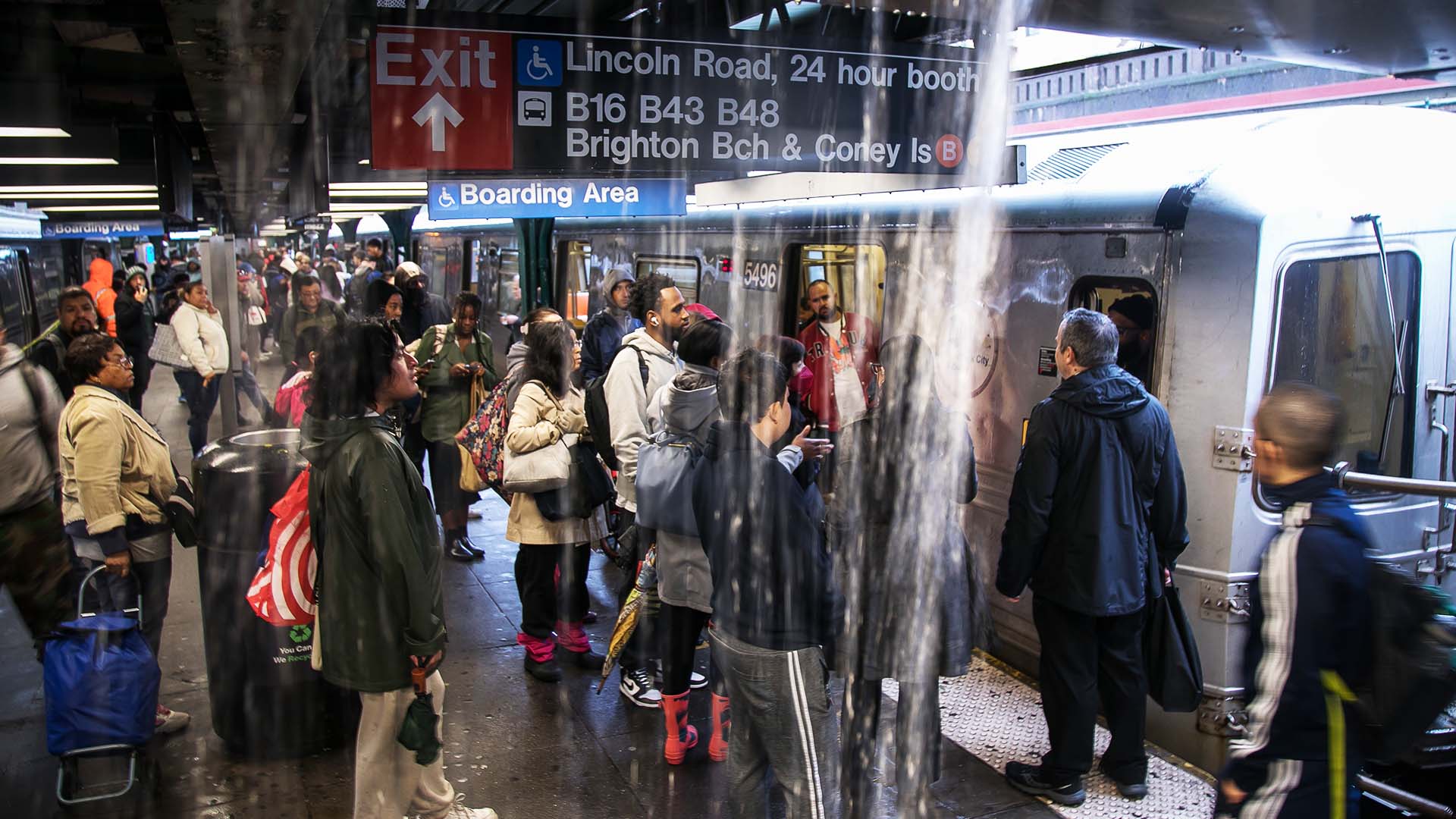 At one subway station, passengers did the best they could to climb the stairs as water came cascaded down. At some stations, water was coming out of the walls and some people were using umbrellas inside the subway stations.