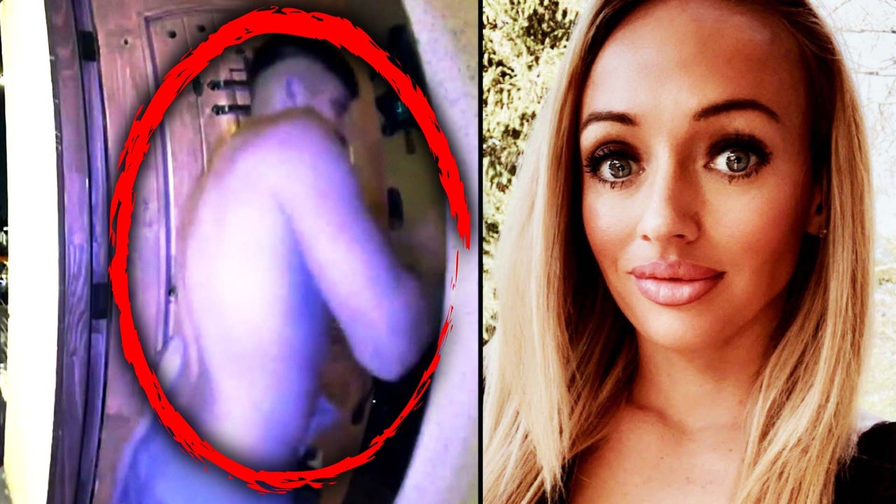 The shirtless suspect is seen leaving a home where he allegedly assaulted a young woman.