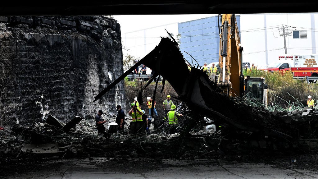 The fire weakened the bridge enough to bring two miles of northbound lanes down, authorities told CBS Philadelphia. The northbound lanes of I-95 were gone, and the southbound lanes were “compromised” because of heat from the fire, said Derek Bowmer, battalion chief of the Philadelphia Fire Department.