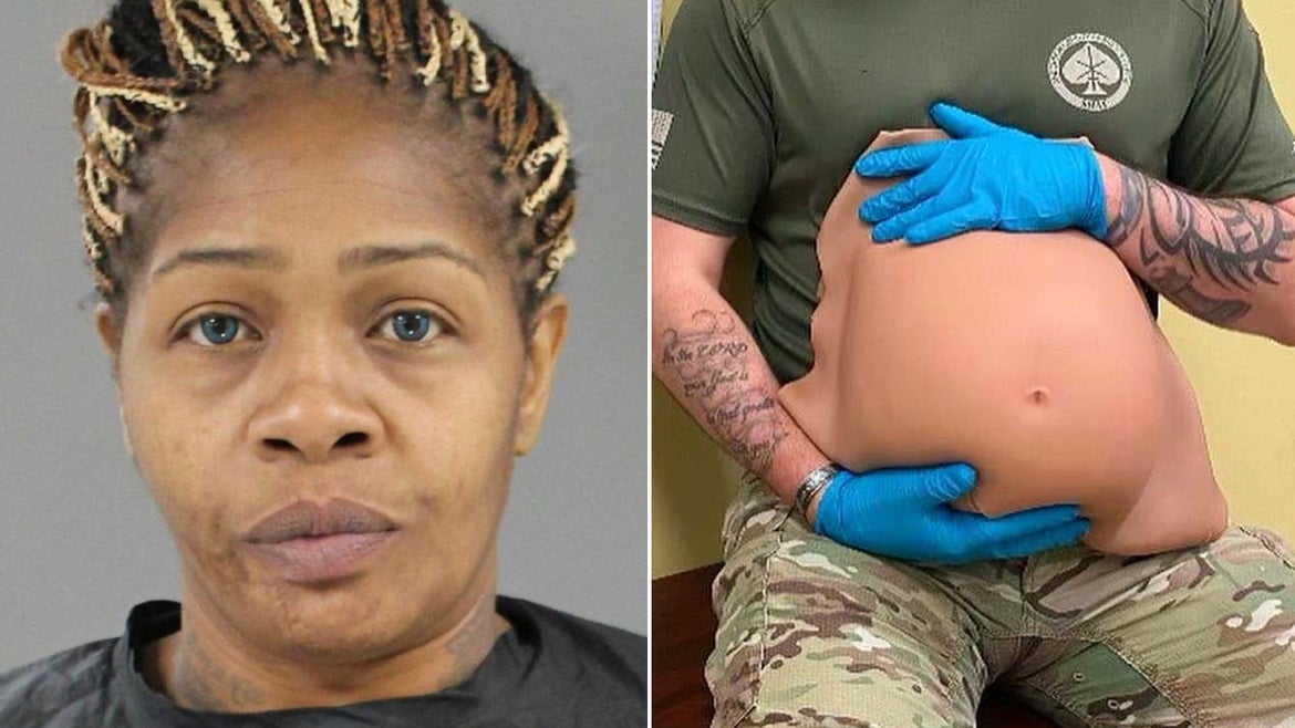 After Anthony Miller and Cemeka Mitchem allegedly gave police conflicting information about Mitchem's due date, Mitchem tried running away, police said. “Very quickly, drugs fell from the fake rubber stomach,” cops said.