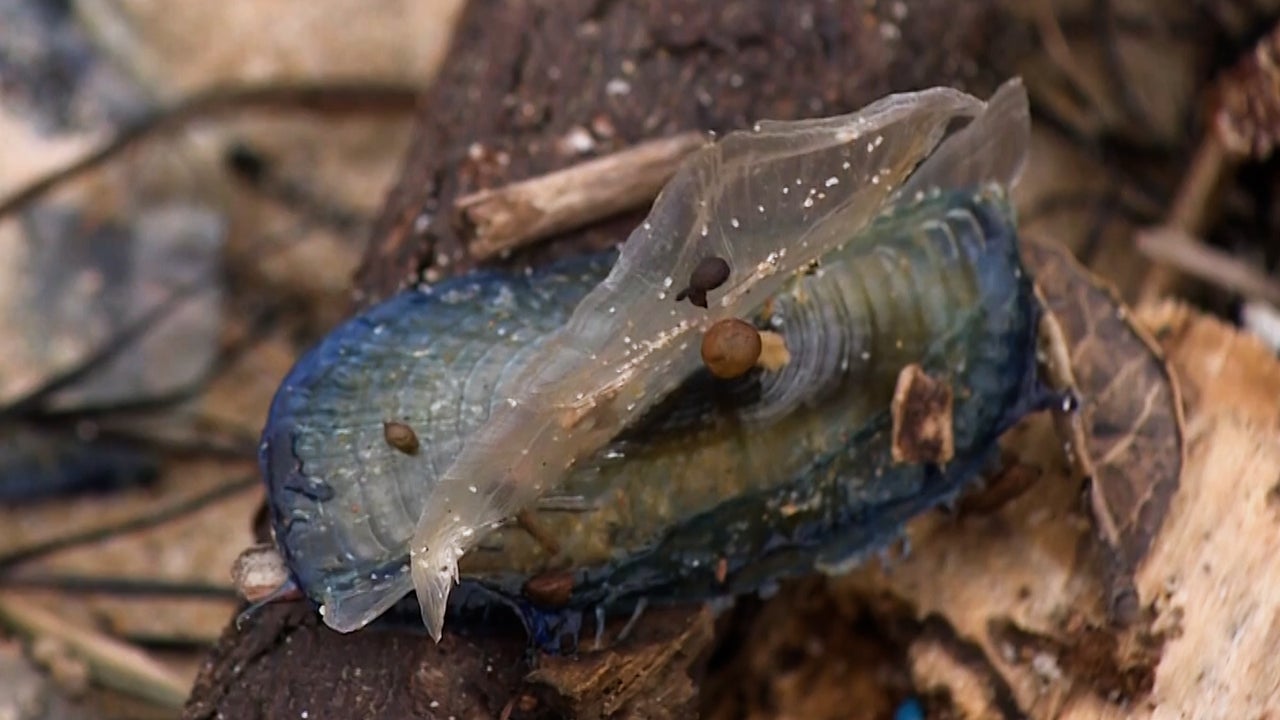 The beaches in Southern California are seeing thousands of creatures with stinging tentacles wash ashore. The creature's scientific name is Velella velella, but they are also known as by-the-wind sailors. Experts don’t suggest touching their tentacles.