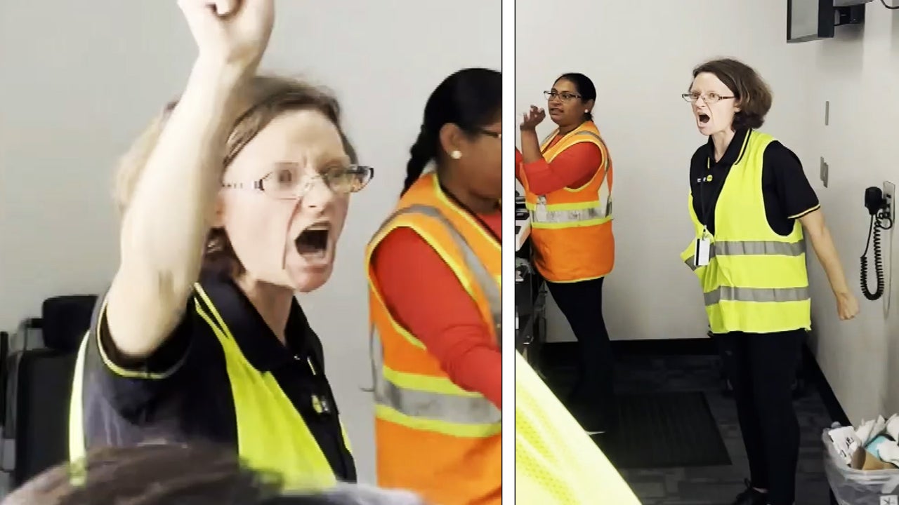 "Everyone's gonna shut up and we're gonna say this once and we're only gonna say it again because we're frustrated as hell," the gate agent told passengers.