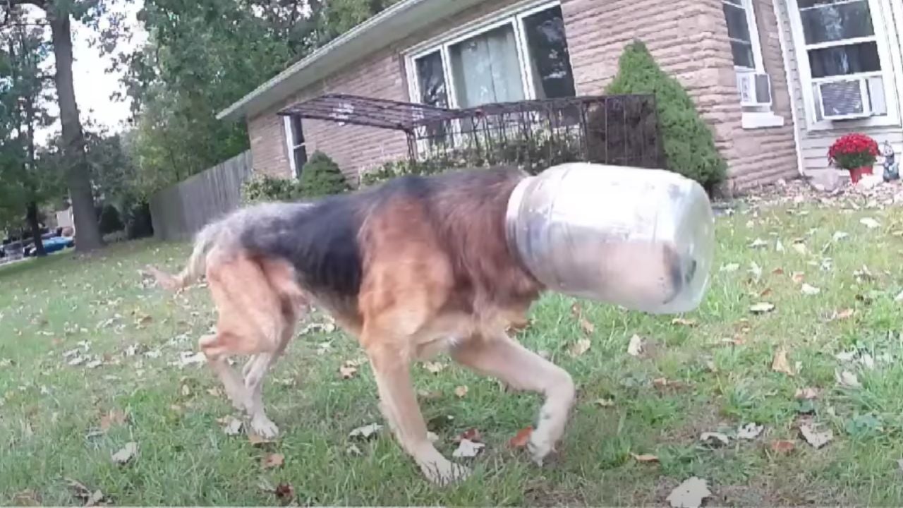 When the dog was finally caught, the jug was on so tight it had to be cut off.