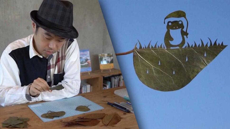 Japanese Artist Known for His Artistic Specialty of Leaf Carving