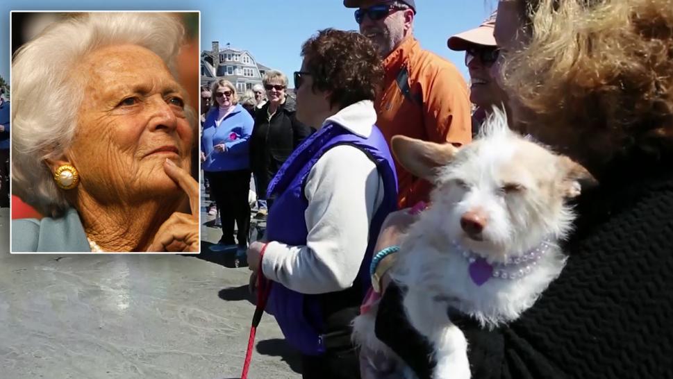 Dog Walkers and Their Pets Hold Beach Memorial for Barbara Bush