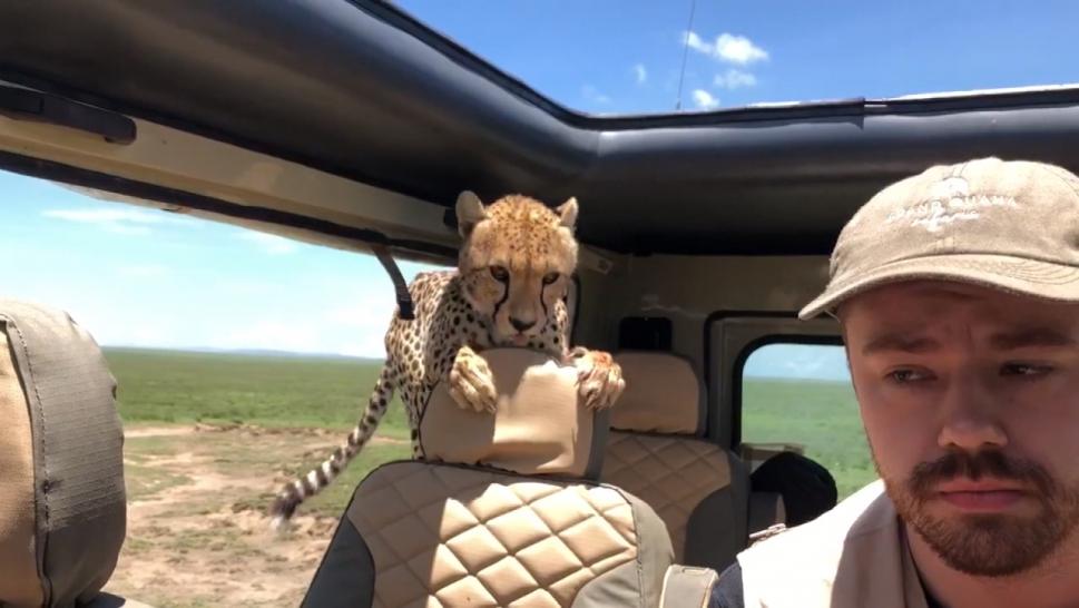 Tourist Turns Into Statue as Cheetah Invades Safari Vehicle