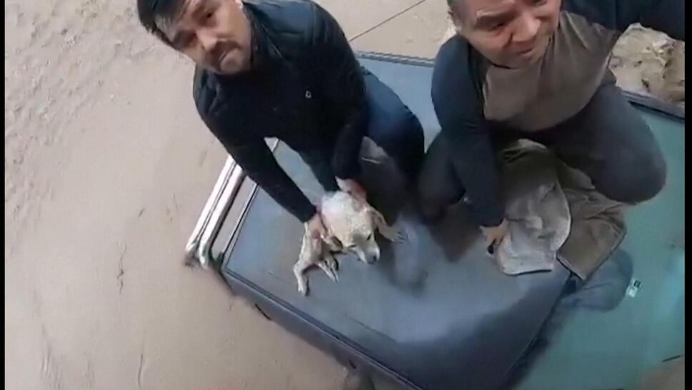 Helicopter Saves Men and Dog in Van Sinking in Flood