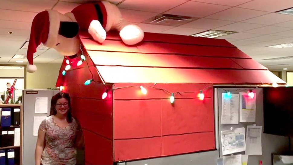 Woman Transforms Her Office Cubicle Into Snoopy's Doghouse