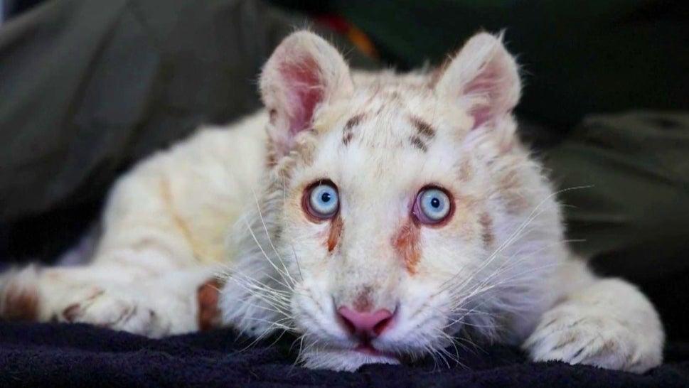 White Tiger Cub Found in Trash Bin Outside Zoo in Greece