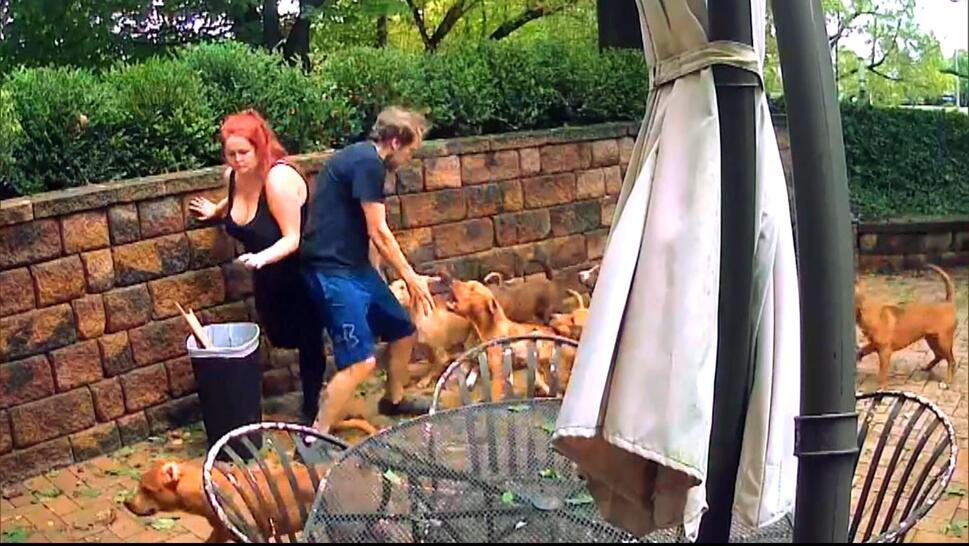 Home security camera shot of Doordash delivery driver spraying something on delivery