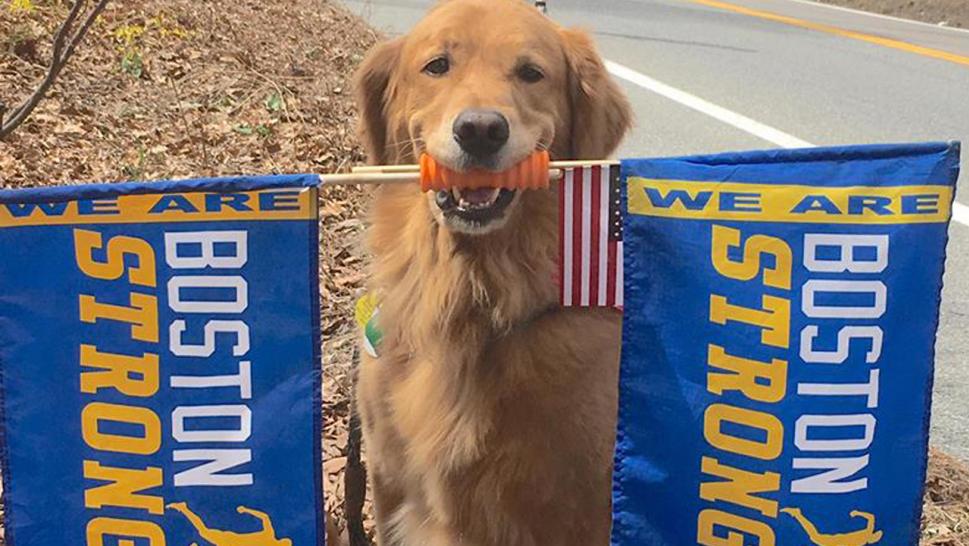 Therapy Dog Waves 'Boston Strong' Flags to Cheer On Marathon Runners