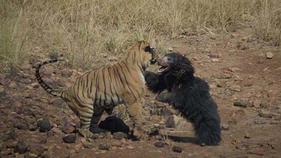 Incredible Video Shows Rare Face-Off Between Tiger and Mother Bear