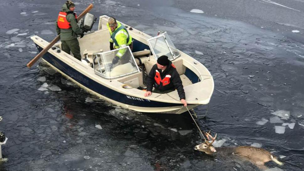 Hunter Breaks Through Icy Lake to Rescue Trapped Buck From Water