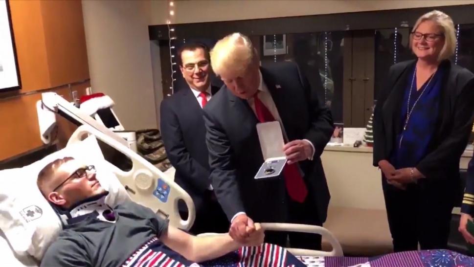 Wounded 25-Year-Old Airborne Engineer Given Purple Heart by President Trump