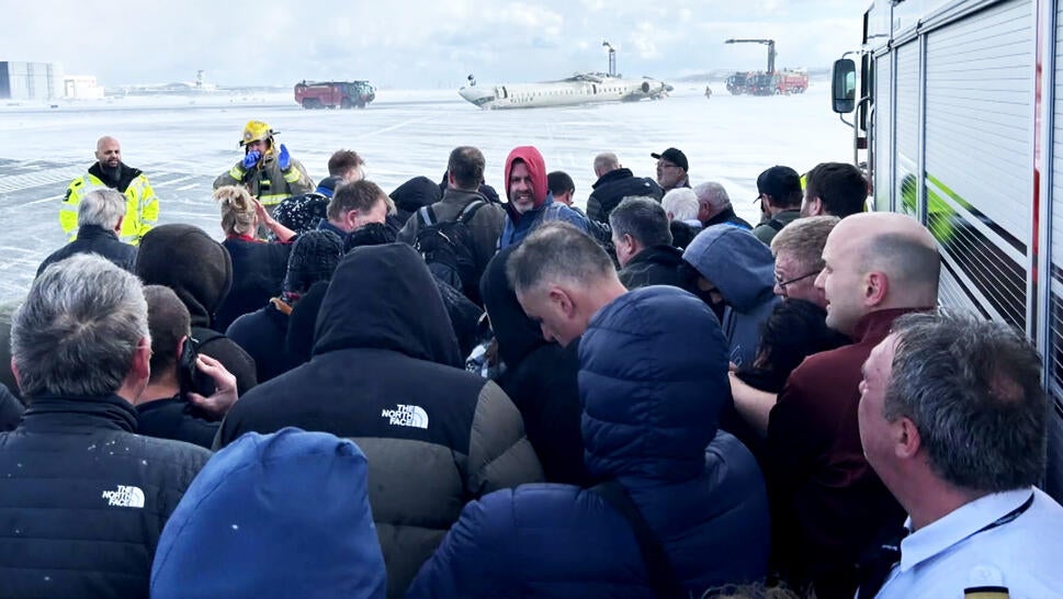 Plane Passengers Huddle Together After Escaping Flipped Delta Flight in Toronto