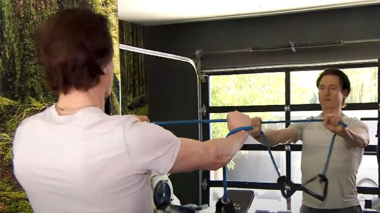 The 46-year-old starts his morning off with five-minute light therapy and an hour-long workout.