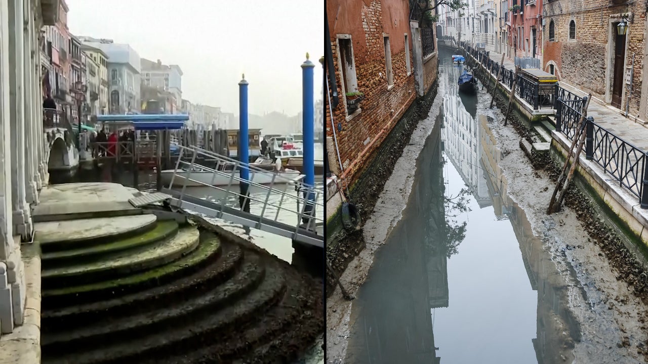 The water levels in the legendary canals of Venice have dropped to record lows.