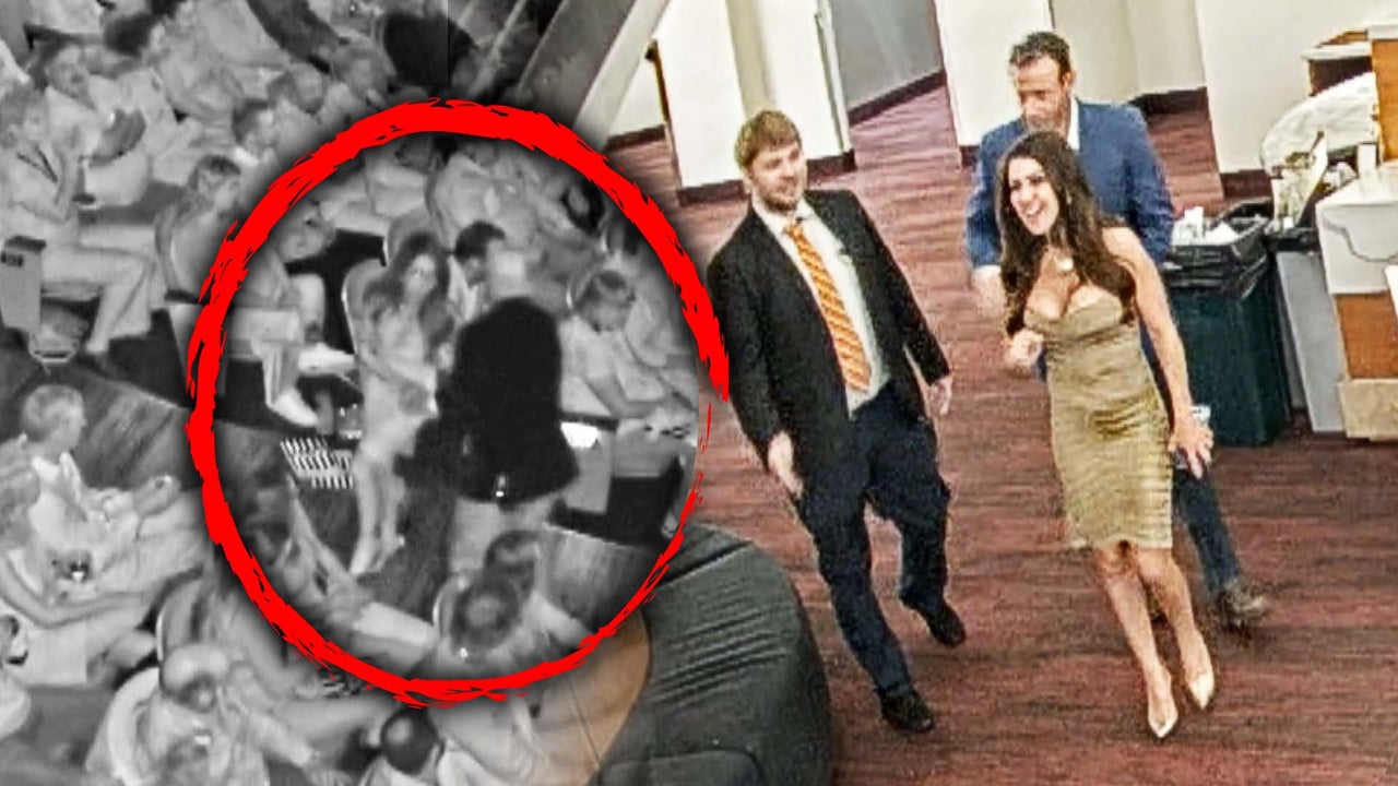 She is next seen in a video as she exits the auditorium and enters the lobby. She can be seen striding across the lobby in her very tight, and low-cut, mini dress with the man reported to be her new boyfriend.