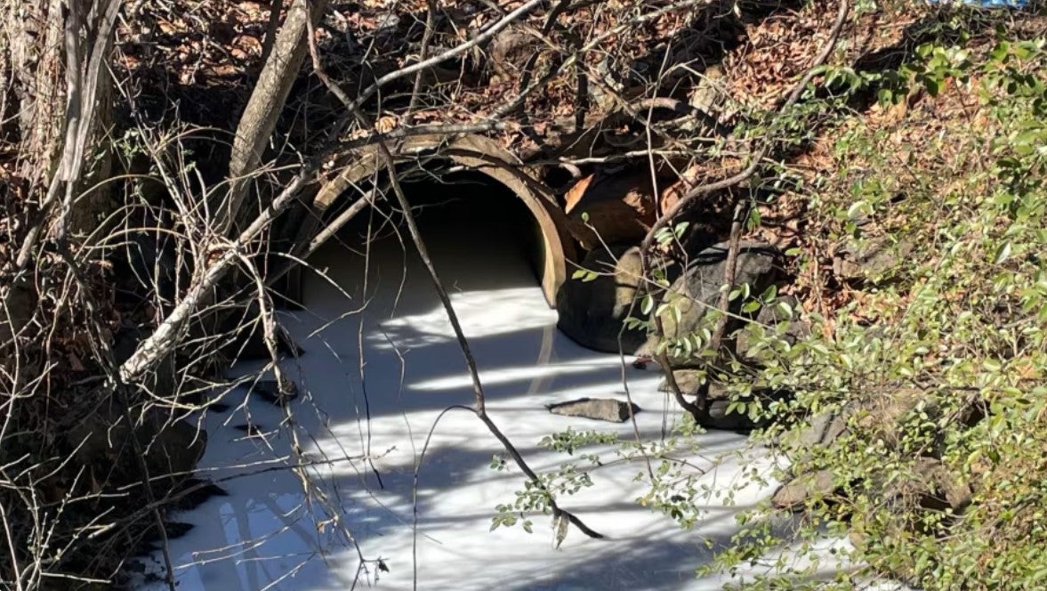 Thanks to a clogged drain, waste milk from a nearby cow dairy had backed up into the sewer system, and then spewed into a creek along a local road.