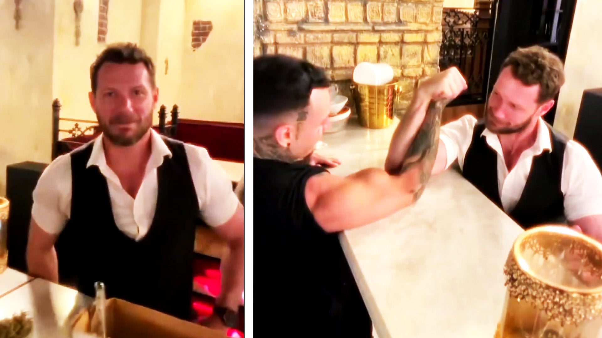 New video has been release of the slain actor during his bartending shift. The video shows a fun-spirited arm wrestling competition between Wactor and another bar employee.